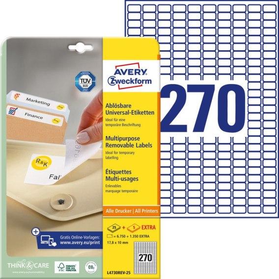 ETYKIETY A4 AVERY 17,8*10mm USUWALNE BIAŁE 25szt