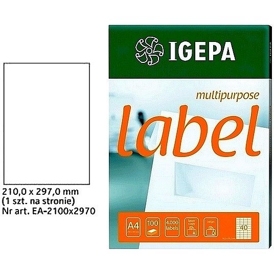 ETYKIETY A4 IGEPA 210*297mm BIAŁE 100szt