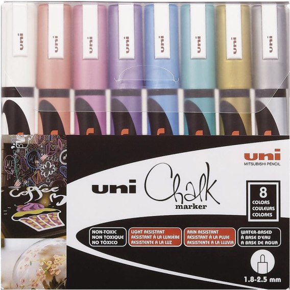 * profesjonalne markery kredowe UNI PWE-5M do pisania i malowania po czarnych tablicach i szkle