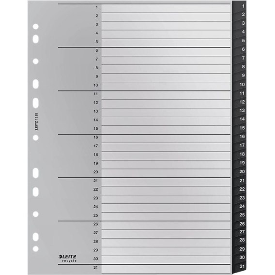 * 31 indeksów z nadrukiem od 1 do 31 zapewnia łatwy dostęp do dokumentów