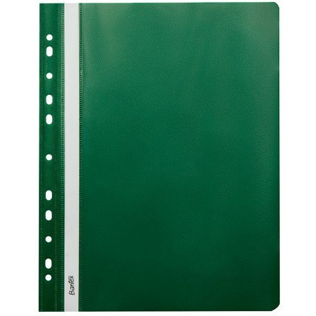 * Klasyczne skoroszyty w formacie A4, wykonane z polipropylenowej folii. Przednia okładka o grubości 120 mic. jest przezroczysta dla doskonałej widoczności dokumentów. Tylna okładka o grubości 170 mic. została wykonana z nieprzezroczystej, czarnej folii. Metalowe wąsy bezpiecznie mocują dokumenty w skoroszycie. Na grzbiecie znajduje się wymienny pasek do opisu zawartości. Uniwersalna perforacja umożliwia wpięcie skoroszytów do każdego segregatora.