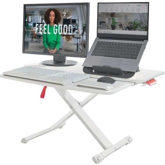 Regulowana podstawka na biurko Leitz Ergo Cosy z wysuwanym pulpitem na klawiaturę i mysz umożliwia elastyczną zmianę pozycji podczas pracy z siedzącej na stojącą, co stymuluje ruch mięśni, poprawia postawę i zwiększa poziom energii. Jest szybka i łatwa do ustawienia, w jednej chwili umożliwi Ci pracę w innej pozycji, zapewniając jednocześnie pewność i stabilność ustawienia na każdej wysokości. Wspomagana pneumatycznie regulacja umożliwia bez wysiłkowe podniesienie podstawki na idealną wysokość, a ruch w górę i w dół odbywa się tylko w obrębie podstawki, co pozwala na oszczędne gospodarowanie miejscem na biurku. Podstawka na biurko umożliwiająca zmianę pozycji podczas pracy poprawi Twoje zdrowie i samopoczucie oraz stworzy idealne stanowisko do aktywnej pracy. Zaprojektowana jest w minimalistycznym i nowoczesnym wzornictwie. Połącz ją z innymi produktami Leitz Ergo, aby uzyskać przyjazne i elastyczne miejsce pracy, które zapewni Ci swobodę ruchu przez cały dzień.
