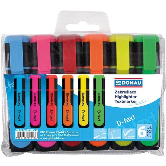 Zakreślacze Donau D-Text 6 kolorów